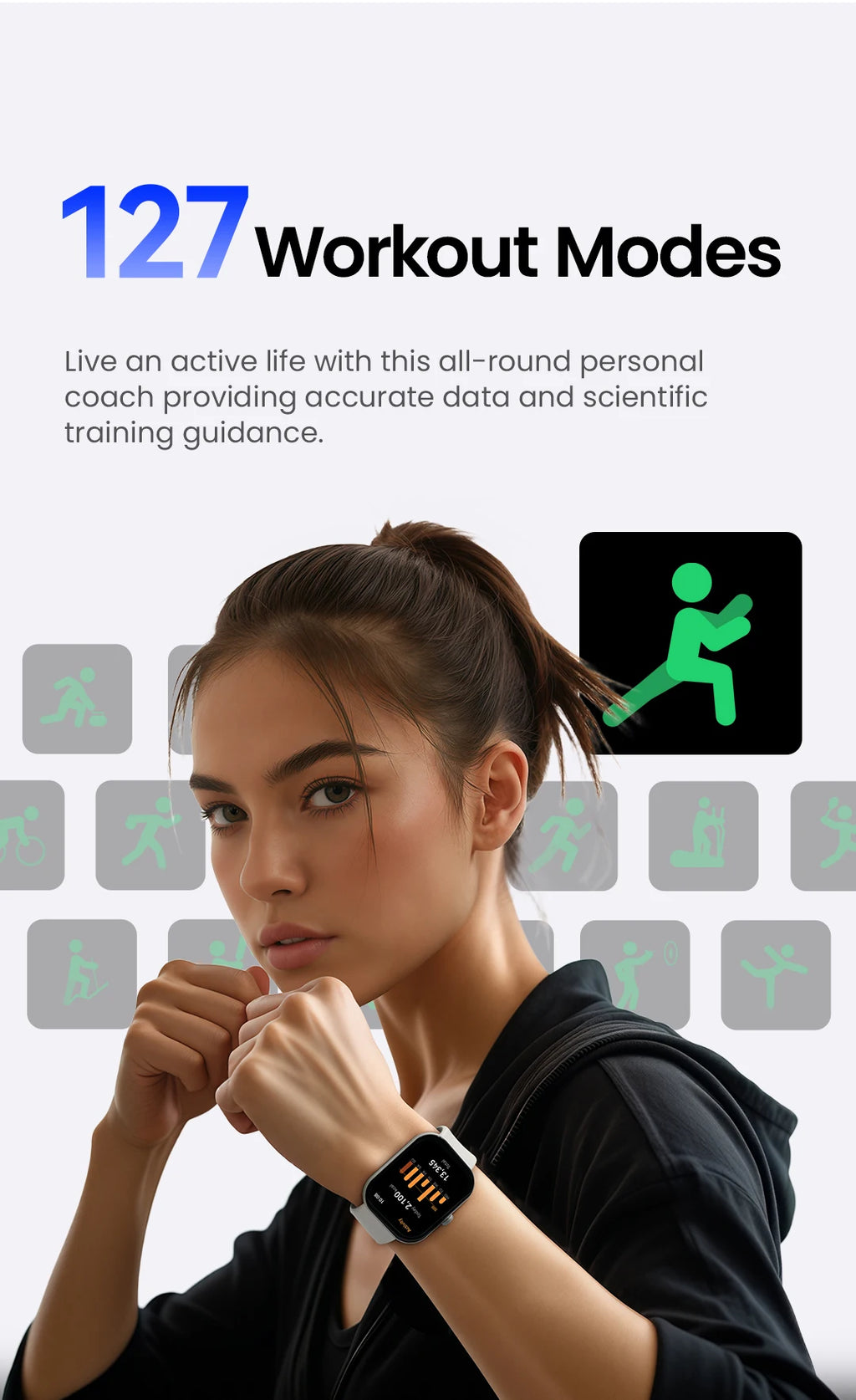 127 Workout Modes │ 150+ Watch Faces │ IP68 Waterproof │ SOS Emergency Call.